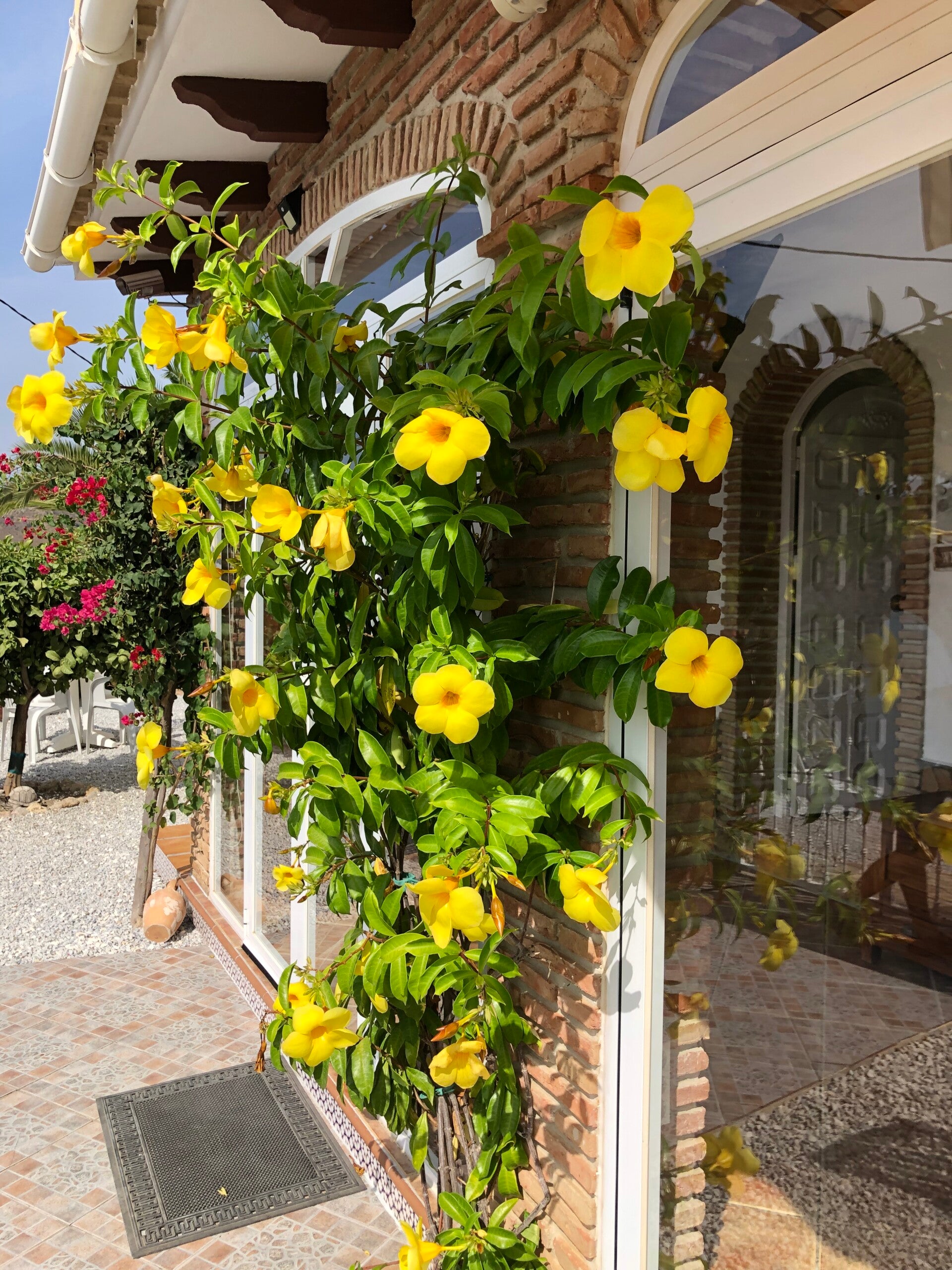 In de serre voor het huis is er ruimte voor gezamenlijke oefeningen om te dag te beginnen.
