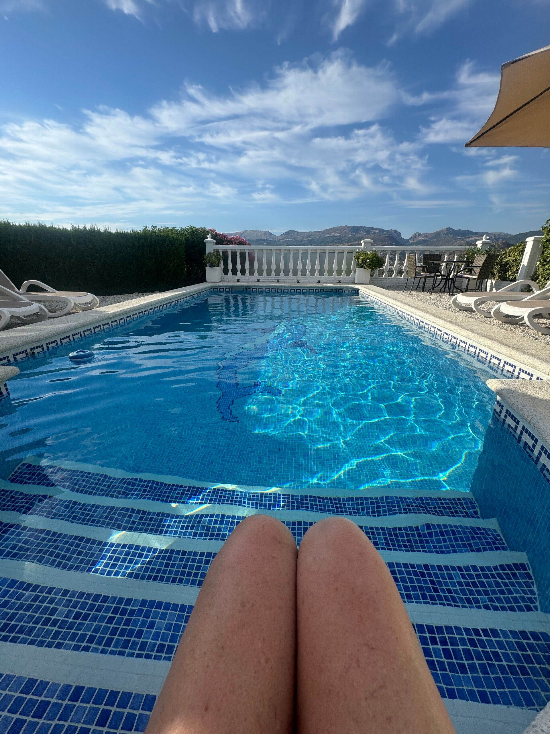 De villa is gelegen op een berg en we zitten op 300 meter hoogte met panoramische uitzichten